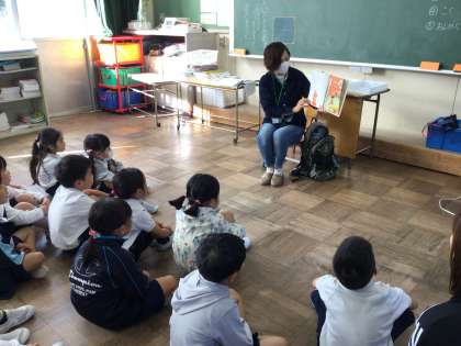 今日は、読み聞かせグループ「ねぎぼうず」さんによる本の読み聞かせがありました。