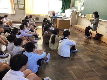 今日は、読み聞かせグループ「ねぎぼうず」さんによる本の読み聞かせがありました。