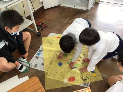 今日は、運動会に向けて応援旗を作りました。