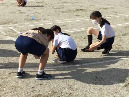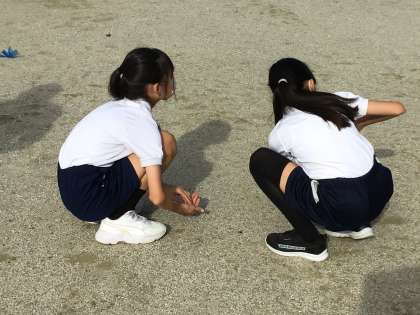運動会を前に、5,6年生が運動場の石拾いをしました。