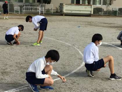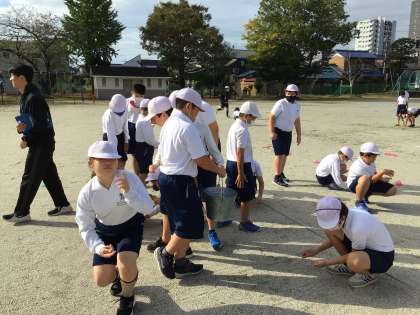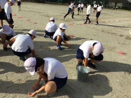 運動会を前に、5,6年生が運動場の石拾いをしました。
