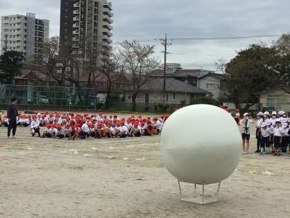 運動会に向けて、全校で応援コールや大玉送りの練習をしました。