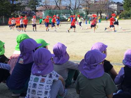 園児さん達は、一生懸命に応援してくれたので、1、2年生も張り切っていました。
