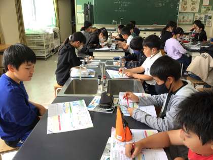 5年生が理科の学習で、水溶液について学んでいます。