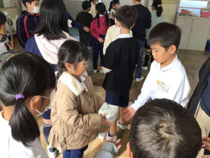 1年生〜6年生の児童が混ざった班で、楽しく遊びます。