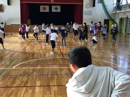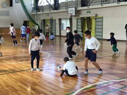 1年生〜6年生の児童が混ざった班で、楽しく遊びます。