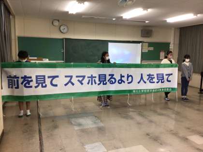 また、全校集まる一斉下校では、静かに早く集まることを生活委員長が呼びかけました.
