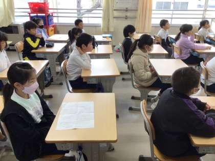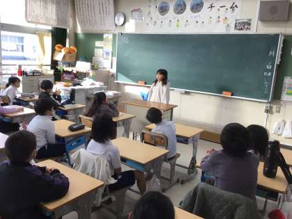 キラキラタイム(朝の活動)に、スピーチをしている学級があります。