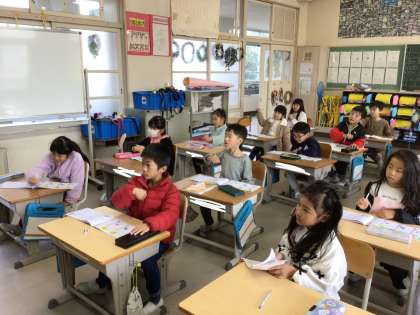 1年生が、漢字の勉強をしています.