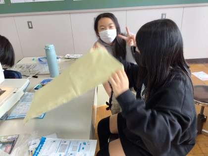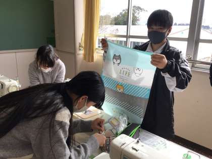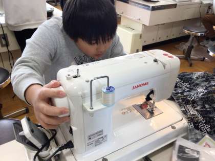 6年生が、家庭科でミシンを使っています。