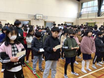 体育委員は、「根川っ子体操」を覚えてほしいと連絡を、環境委員はアルミ缶回収のお知らせをしました。31日(水)に行うそうです。
