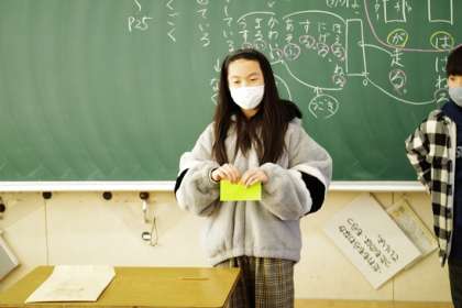 もうすぐ地域の方をご招待する感謝の会です。本校の特色は、児童が主体的に行事などを作り上げるところです。本日はふれあい活動にて、会の成功に向けて、6年生が他学年に折り紙の折り方を教えていました。