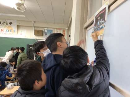 昨日、送る会の準備や企画をした5年生、下級生が、お礼をしました。