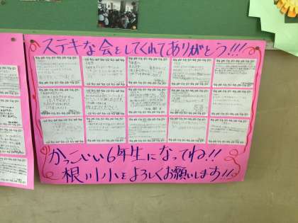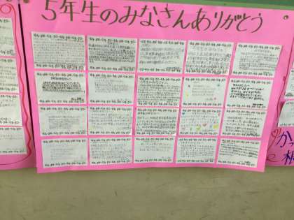 先日、6年生を送る会を行なって、1〜5年生が感謝の気持ちを6年生に伝えました。
