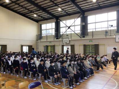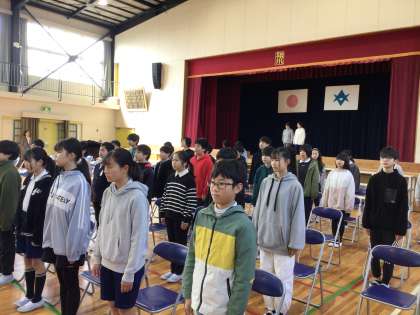 1、2、3年生は、卒業式に出られないため、全校が揃うのはこれが最後です。6年生のかっこいい姿を目に焼き付けていました。