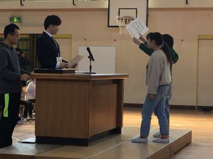 6年生は、全校の前なので、ちょっと緊張しながら証書を受け取っていました。