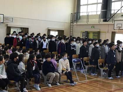 1、2、3年生は、卒業式に出られないため、全校が揃うのはこれが最後です。6年生のかっこいい姿を目に焼き付けていました。