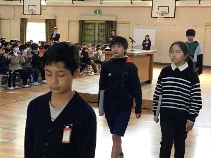 また、4、5年生は、これまで練習してきた歌や言葉、立ち振る舞いを心を込めて行なっていました。