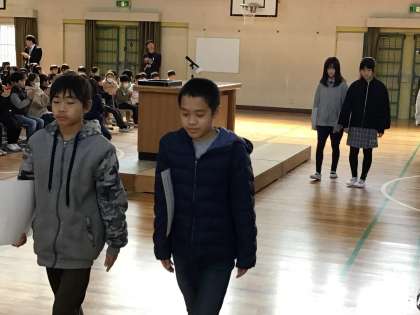 1、2、3年生は、卒業式に出られないため、全校が揃うのはこれが最後です。6年生のかっこいい姿を目に焼き付けていました。