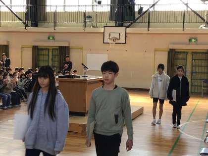 1、2、3年生は、卒業式に出られないため、全校が揃うのはこれが最後です。6年生のかっこいい姿を目に焼き付けていました。