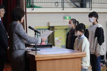 代表児童が「修了証」をもらいました。