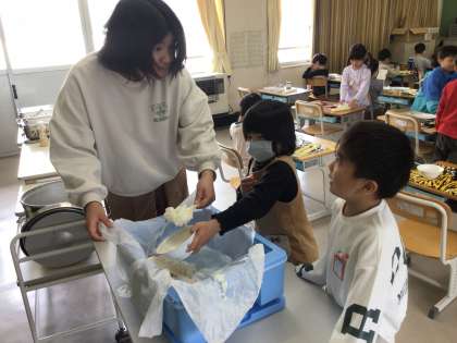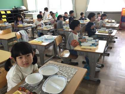 今日は、1年生にとって、初めての学校給食でした。