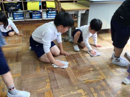 学校をキレイにするために、頑張って掃除をしています。