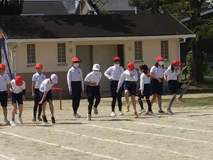 体育の授業で、短距離走を行なっています。