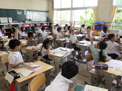 年度はじめの授業は、話し手の方を向いて話を聞くことや、みんなに聞こえるような声で話すことや、手をピンピンに伸ばして挙手することなど、学習の基本を身に付けることを頑張っています。