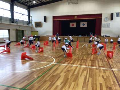 4年生が、体育の授業で体つくりのゲームを行なっています。