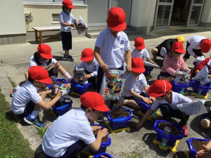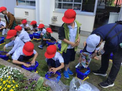 1年生が、朝顔の種まきをしました。