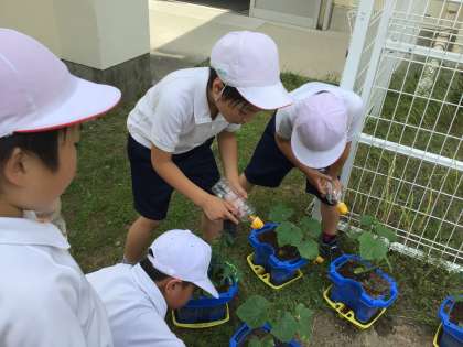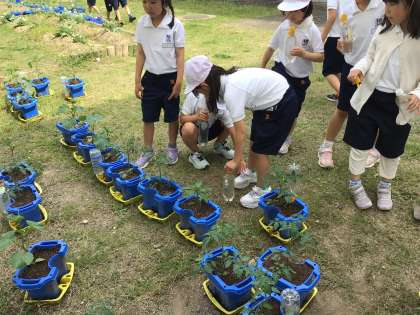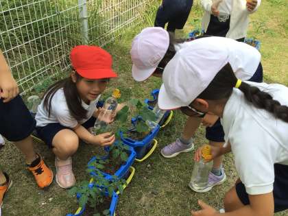 2年生が、野菜を育てています。