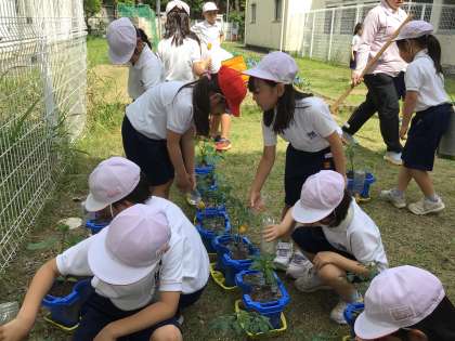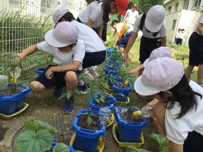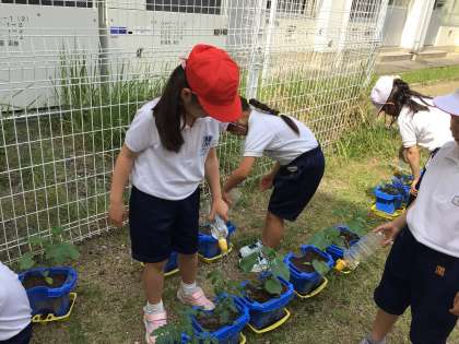 2年生が、野菜を育てています。