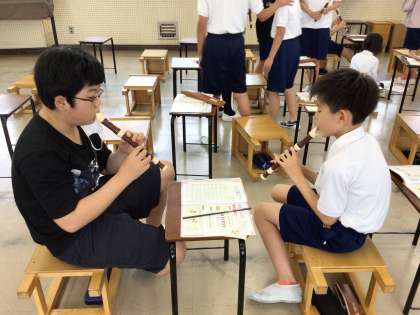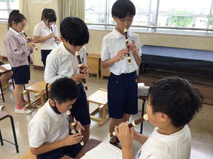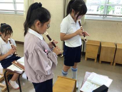 5年生が、リコーダーの練習をしています。