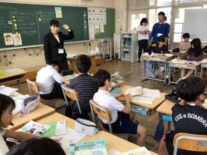 今日は、教育実習の先生の授業です。