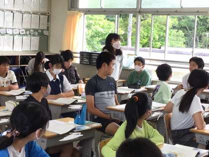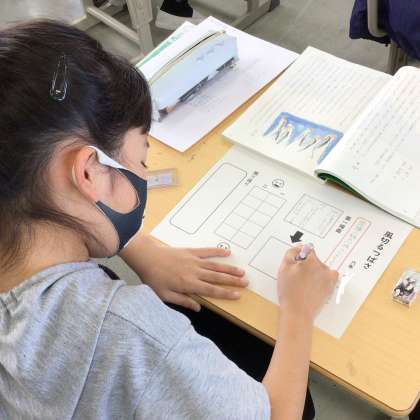 友達の意見を聞きながら、自分の考えと比べて話し合っています。