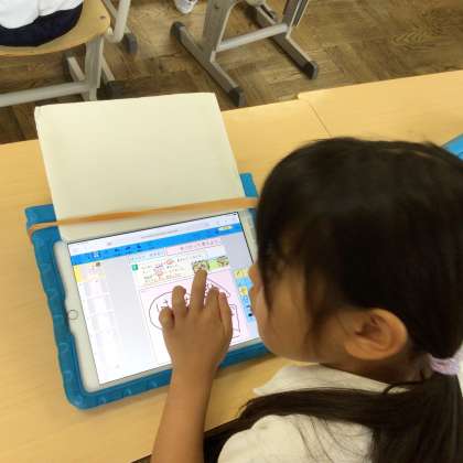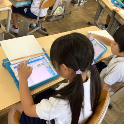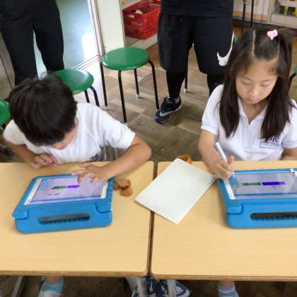 テープ図や、タブレットを使って、どんな式にしたらいいか、考えながら式を立てています。