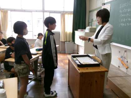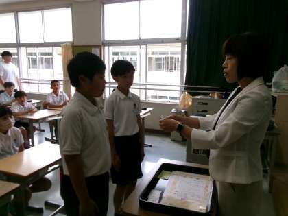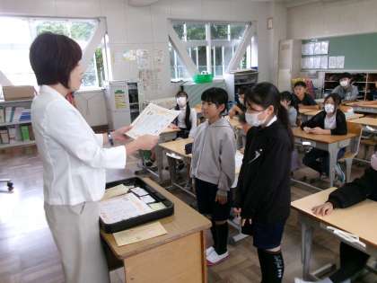 先日、あいさつを頑張ったクラスに、校長賞を渡しました。