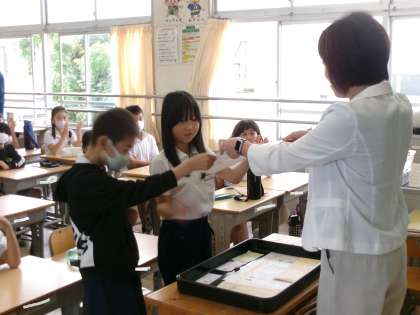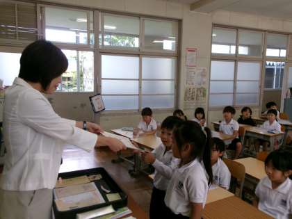 先日、あいさつを頑張ったクラスに、校長賞を渡しました。