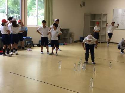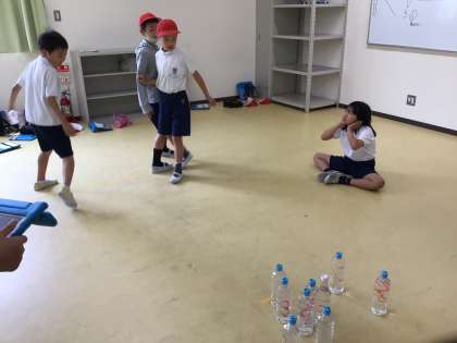 木の教具の代わりにペットボトルで行いました。