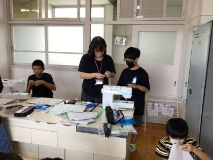 6年生が、家庭科でナップザックを作っています。