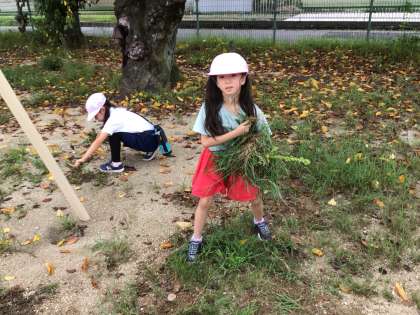 雨上がりの日に、大勢の子ども達が草取りを手伝ってくれました。
