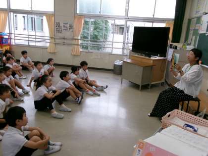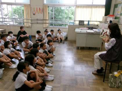 今朝は、「ねぎぼうず」さんによる読み聞かせを行いました。