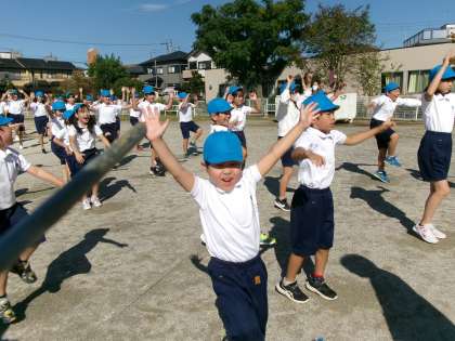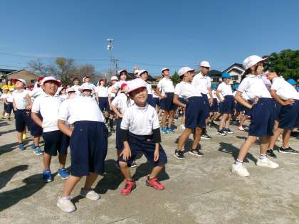 体育委員が中心になって、「ジャンボリミッキー!」の曲に合わせ、準備運動の要素を取り入れ、考えた体操です。