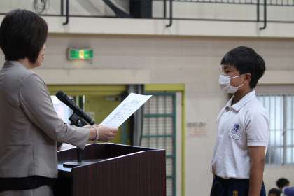 始業式の前には、認証式を行い、学級代表や委員会の委員長の認証を行いました。