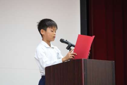 始業式の前には、認証式を行い、学級代表や委員会の委員長の認証を行いました。
