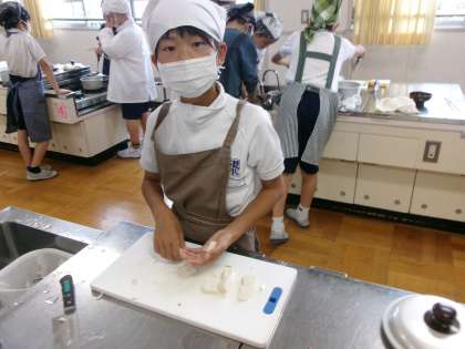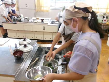 5年生が、家庭科の時間にお味噌汁を作りました。鰹節からだしをとることから始めました。
