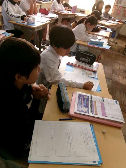 愛知工業大学の方々がみえ、マイタイムライン(災害時の避難の仕方を家族とともに考える活動)を作成しました。