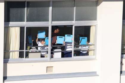 11月21日に、豊田市で開催されたラリージャパンのイベントとして、ブルーインパルスショーがありました。子どもたちは、運動場や教室の窓から見ることができました。中には、感動して泣いている子もいました。
