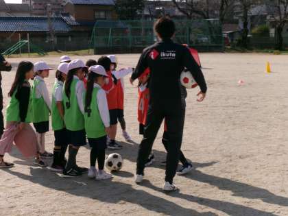 1,2年生が、グランパスの選手にサッカーを教えてもらいました。